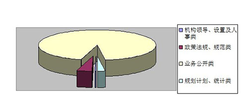 (一)进一步强化主动公开力度,规范信息公开分类。新改版的威海市旅游政务网,在首页醒目位添加了政府信息公开专栏,强化政务信息公开的重要性,为广大人民群众提供全面、及时、准确的政务信息。同时,结合各科室工作分工,对公开的内容进行了划分整理,使其更加规范,布局更加合理。2013年,威海市旅游局共主动公开政府信息941条。具体为:机构领导、设置及人事类3条,占0.3%;政策法规、规范性文件类38条,占4%;业务公开类877条,占93.1%;规划计划、统计类21条,占2.2%。