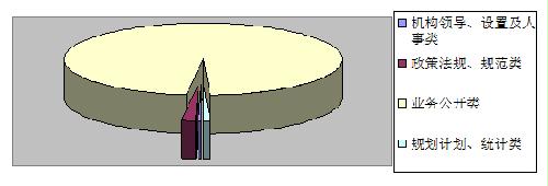 (一)进一步强化主动公开力度,规范信息公开分类。威海市旅游政务网在首页醒目位添加了政府信息公开专栏,强化政务信息公开的重要性,为广大人民群众提供全面、及时、准确的政务信息。同时,结合各科室工作分工,对公开的内容进行了划分整理,使其更加规范,布局更加合理。2014年,威海市旅游局共主动公开政府信息1037条。具体为:机构领导、设置及人事类1条,占0.2%;政策法规、规范性文件类18条,占1.8%;业务公开类1009条,占97.2%;规划计划、统计类9条,占0.8%。
