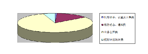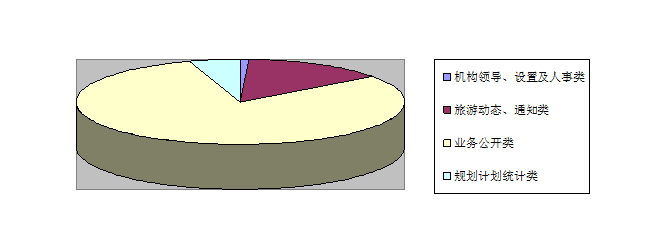 (一)进一步强化主动公开力度,规范信息公开分类。威海市旅游政务网在首页醒目位添加了政府信息公开专栏,强化政务信息公开的重要性,为广大人民群众提供全面、及时、准确的政务信息。同时,结合各科室工作分工,对公开的内容进行了划分整理,使其更加规范,布局更加合理。2015年,威海市旅游局共主动公开政府信息1321条。具体为:机构领导、设置及人事类3条,占0.9%;旅游动态、通知公告文件类179条,占13.6%;业务公开类1023条,占77.4%;规划计划、统计类15条,占4.7%。