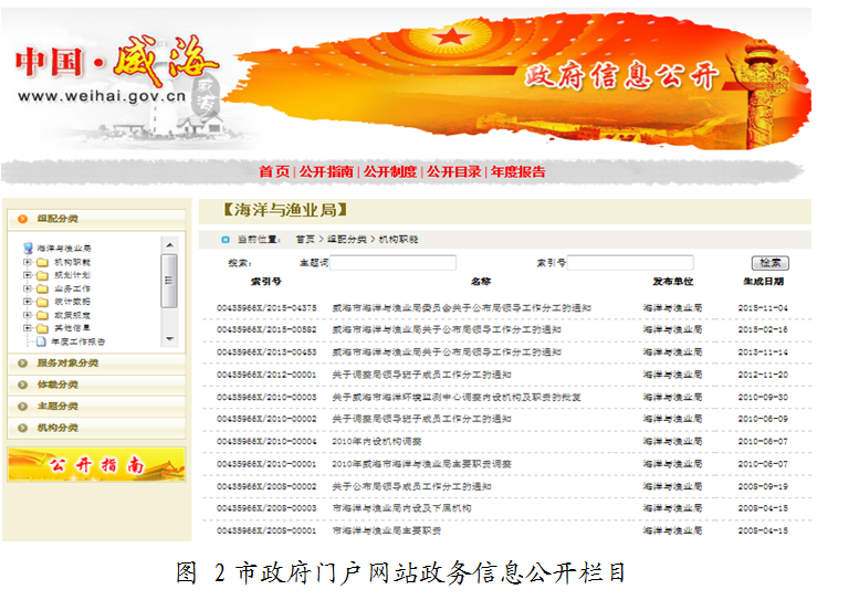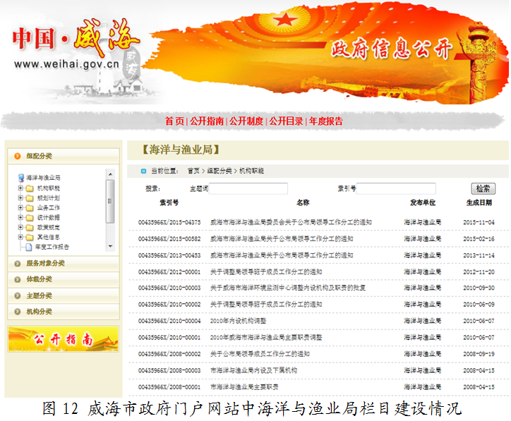 威海市海洋与渔业局2015年政府信息公开工作年度报告