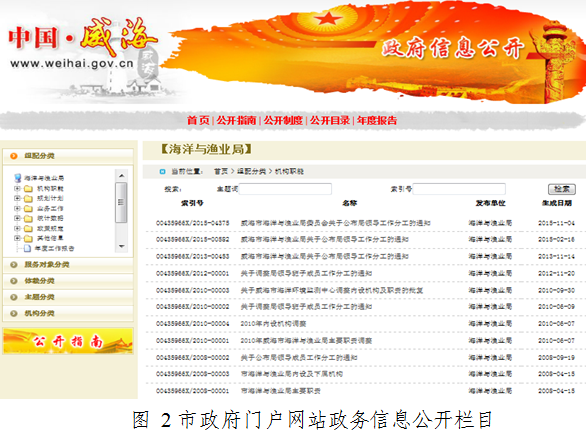 威海市渔政渔港监察支队2015年政府信息公开工作年度报告
