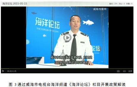 (一)加大宣传解读力度,推动政策落实。年内,组织相关负责人编写材料,通过威海电视台海洋频道《海洋论坛》节目、市海洋与渔业局网站等媒体,对渔业安全生产攻坚年、海洋捕捞渔具管理、《山东省渔业船舶管理办法》、《山东省渔船员电子身份标识管理规定》等方面的政策进行了详细解读。相关视频资料可以登录威海传媒网在线点播,有关文件资料可登陆市海洋与渔业局网站政策法规栏目查阅。