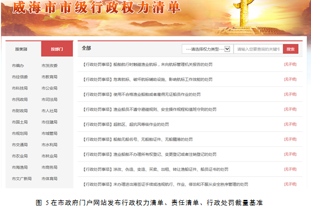 (一)通过政府信息公开完善渔政管理监督机制。通过市海洋与渔业局网站、支队中文域名网站、市政府门户网站等媒体,面向社会公开权力清单、责任清单、渔业行政处罚自由裁量权基准、办事指南,通过市海洋与渔业局网站公布了机构预算、决算,主动接受社会各界、特别是管理服务对象的监督,增强了约束刚性,从源头上避免了处罚的随意性,为确保行政处罚的公平、公正、合理奠定了坚实的基础。