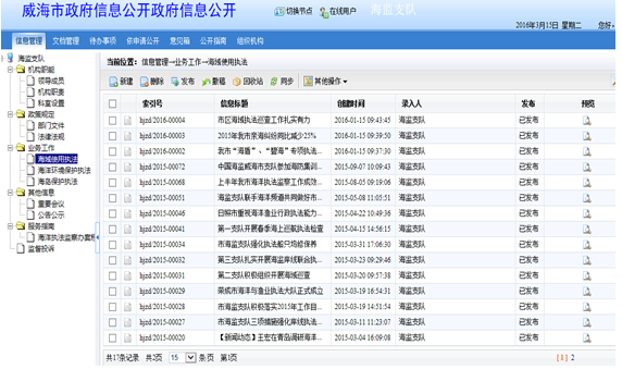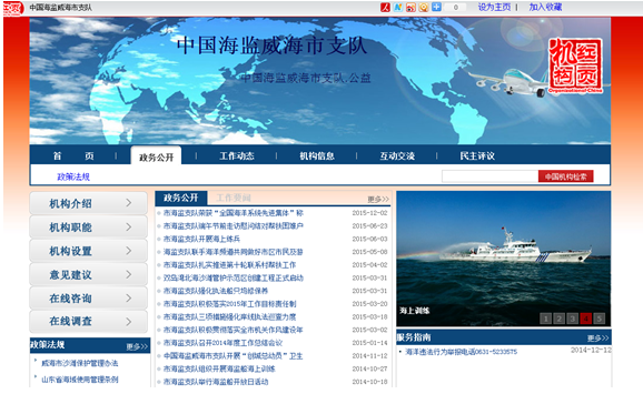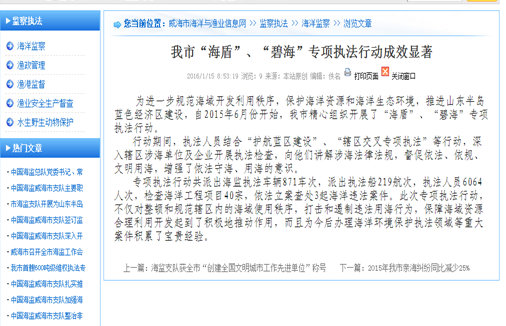 中国海监威海市支队关于2015年度政府信息公开工作的年度报告