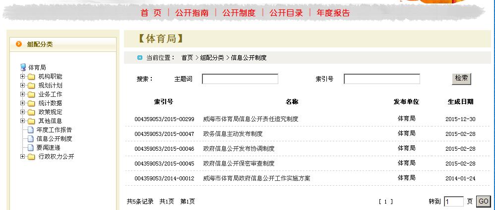 各直属事业单位都建立健全了政府信息公开工作制度,市体育运动学校、市体育场馆管理中心、省体彩威海分中心、竞赛管理中心、体育发展服务中心等与群众关系密切的事业单位,均纳入了政府信息公开体系。市体校、竞赛管理中心除按照相关规定,及时报送、公开信息外,还利用自身的网站及时向公众公开工作动态、铁三赛事情况等。