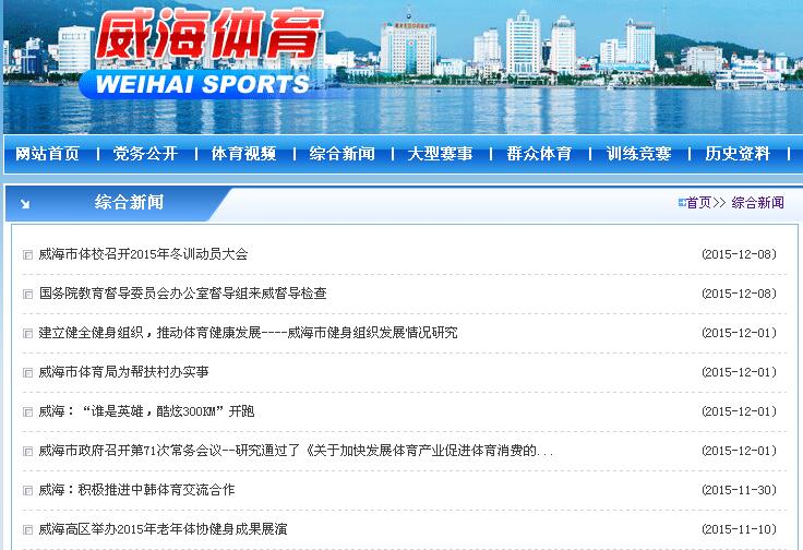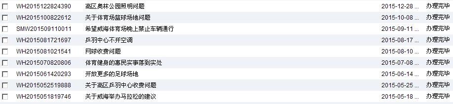 2015年,威海市体育局未接到居民提交的政府信息公开申请。