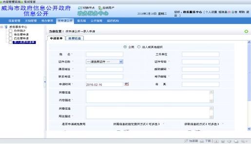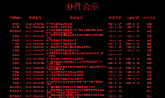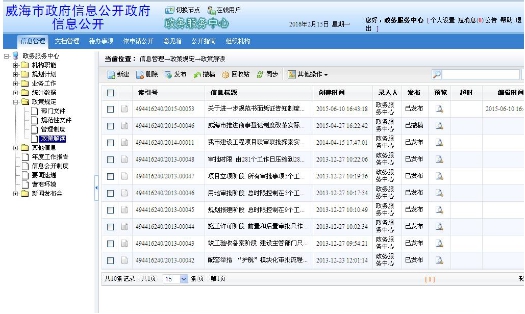 威海市政务服务中心管理办公室2015年度政府信息公开工作报告
