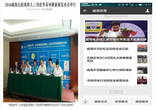 (二)强化政府信息公开平台建设。在依托威海市人民政府信息公开平台开展工作的同时,不断拓展自媒体宣传阵地,开通政务微信,提升了信息发送的实效性。完成体坛纵横103期,通过政府门户网站、部门网站、政务微信微博主动公开各类工作动态及便民信息1900多条,向各类各类新闻媒体提供信息330条。同时,不断加强网站管理,完成网站备案、梳理关键性信息基础设施清单,配合市政府完成政务信息资源目录建设,顺利通过全国网站抽查。在各直属单位大厅设置信息公开栏,定期向档案馆、图书馆报送政府信息。贯彻执行例行新闻发布制度,年内共举办新闻发布会3场次,及时公布了首届中国钓具之都(威海)国际钓鱼文化周、威海—仁川威帆船拉力赛及2016年威海长距离铁人三项世界系列赛的相关情况。