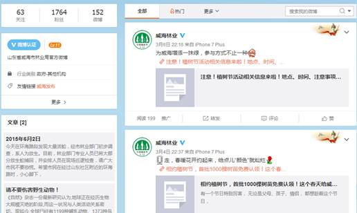 (三)丰富互动渠道,回应社会关切。通过加强市林业局网站建设和管理,综合运用文字、图像等方式,及时全面公开各类政府信息。针对公众关切,主动、及时、全面、准确地发布林业政策信息,以增进公众对林业工作的了解和理解。与公众进行互动交流,局主要负责人2次参加“行风热线”活动,积极回答群众关心的问题。通过微博微信等形式回应事件17次。