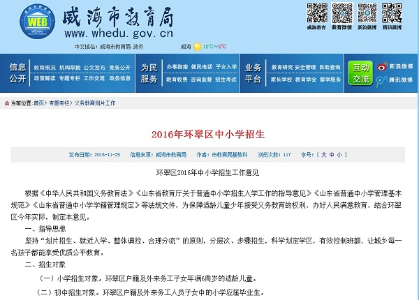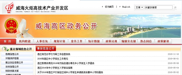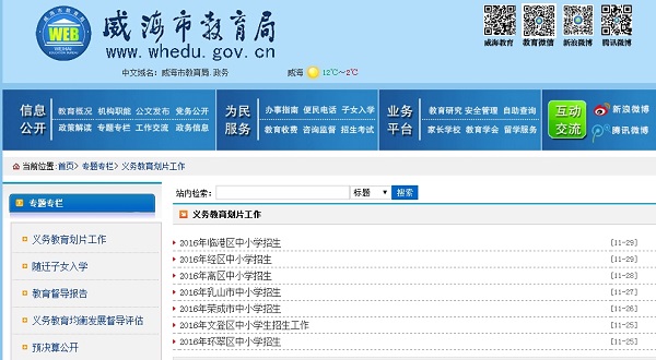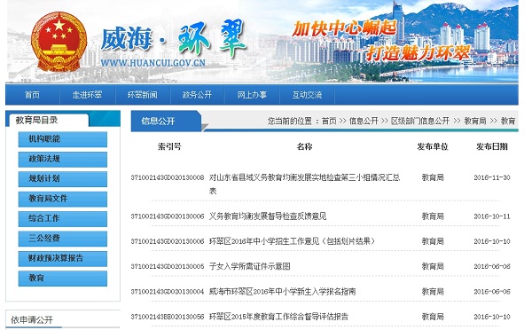 威海市教育局2016年度政府信息公开工作报告