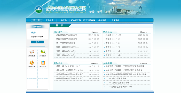息的公开,其中土地供应计划、棚户区改造用地计划经市政府审核同意后第一时间在门户网站“规划计划”栏目中进行主动公开;土地出让、成交公示以及供应结果等信息除了在部门网站“交易信息”栏目实时公开外,在市政府网站、威海市国土资源交易网等多种渠道同步进行公开,切实为公民、法人和其他组织获取政府信息提供便利条件。全年我局发布市区范围土地网上挂牌出让公告16件,已成交土地53