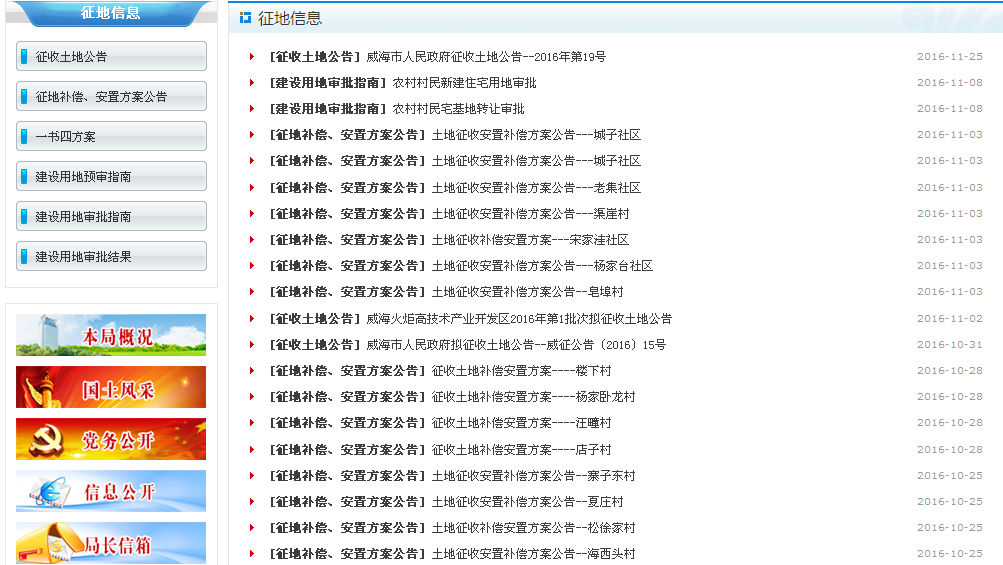 威海市国土资源局2016年政府信息公开工作年度报告
