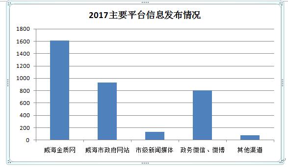 二是强化了部门信息公开平台建设。我局主要通过五大类平台主动公开政府信息:1.在部门网站“威海金质网”上公开政府信息,网站地址为:www.wh12365.gov.cn。全年通过“威海金质网”向社会发布信息1611条。2.发挥新兴媒体的服务作用,在微信公众平台和微博上公布政府信息,全年发布微博560条,微信245期。3.通过新闻发布会以及报纸、电视、广播等新闻媒体发布部分主动公开的政府信息。2017年,全年在《威海新闻》播放质监新闻45条,在市级以上媒体发表稿件90余篇,凸显了质监部门职能与形象。4.通过威海市政府网站(中国·威海)公开政府信息,网站地址为:。全年在“中国·威海”政府网站发布信息933条。5.发挥其他渠道的助力作用,通过市局、政务服务中心办事窗口的公告栏、电子显示屏等及时主动公开办事指南、业务信息等,做到了便民高效,得到了办事企业和群众的充分肯定。