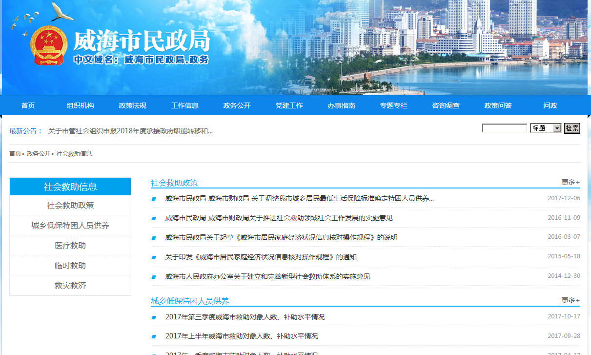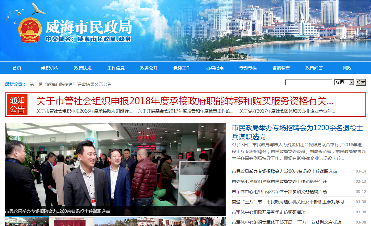 2017年,威海市民政局对形成的政府信息实现了依法、有序公开,未出现因政府信息公开申请行政复议、提起行政诉讼的情况。