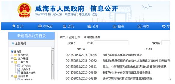 (二)不断提升政府信息公开平台建设。在依托威海市人民政府信息公开平台开展工作的同时,不断拓展自媒体宣传阵地,通过积极运营,政务微信、微博,关注量分别达1541、5527,大大提升了信息发送的实效性。完成体坛纵横45期,通过政府门户网站、部门网站、政务微信微博主动公开各类工作动态及便民信息2500多条,向各类各类新闻媒体提供信息400条。同时,配合市政府完成政务信息资源目录建设,顺利通过全国网站抽查,设立信息发布台账,不断增强信息发布的规范性。在各直属单位大厅设置信息公开栏,定期向档案馆、图书馆报送政府信息。贯彻执行例行新闻发布制度,年内共举办新闻发布会5场次,及时公布了2017年威海铁人三项世界杯赛暨威海超级铁人三项系列赛、2017年“鱼游四海杯”中国威海国际路亚精英赛等活动的相关情况。