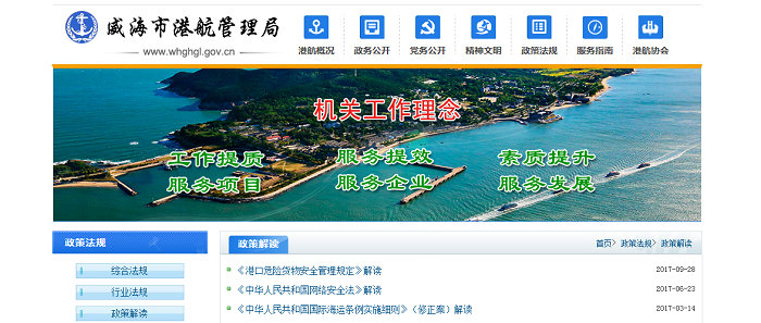 威海市港航管理局2017年度政府信息公开年度报告