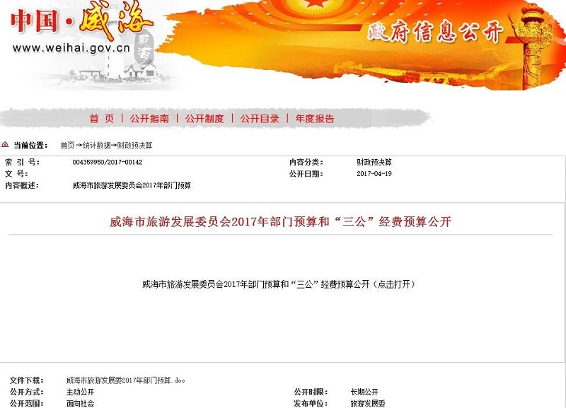 威海市旅游发展委员会2017年度政府信息公开工作报告