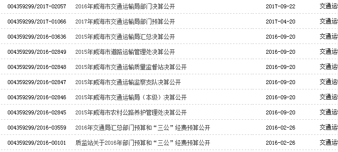 威海市交通运输局关于2017年度政府信息公开工作情况的报告