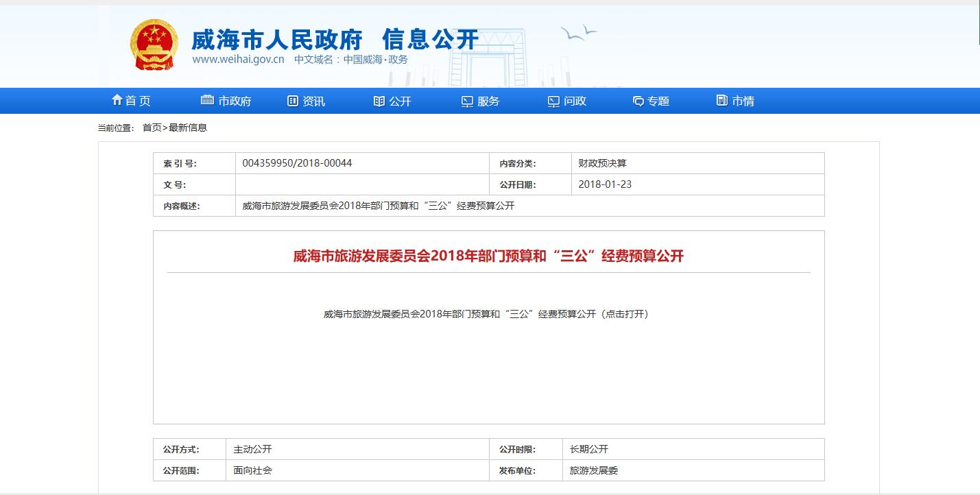 威海市文化和旅游局2018年度政府信息公开工作报告