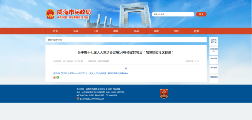 索引号: 1137100000435907XJ/2020-00237 发布单位: 威海市民政局