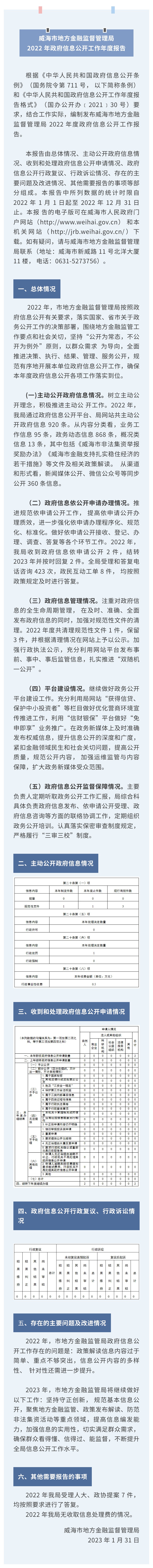 威海市地方金融监督管理局2022年政府信息公开工作年度报告