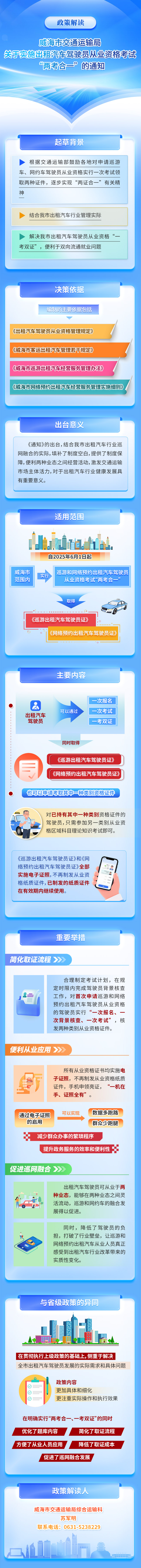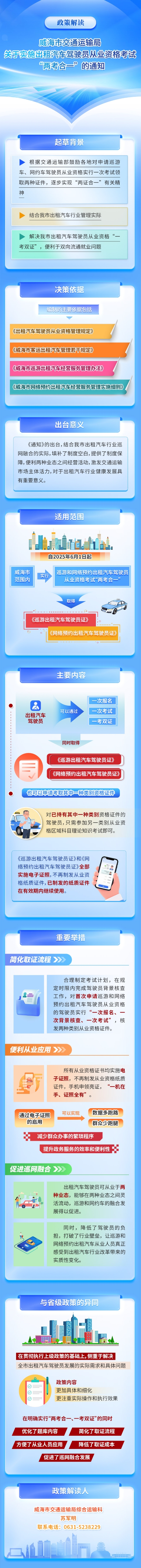 一图读懂 | 威海市实施出租汽车驾驶员从业资格考试“两考合一”
