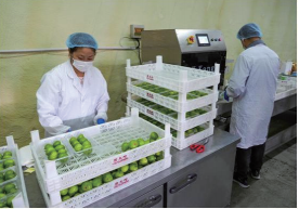 · 连锁店、商超运营:挑拣7-8分熟的果实,果皮保持完好,无表皮伤,规格直径45mm-60mm;采用压差预冷技术,实现存储、分拣、包装、运输、全程低温操作。