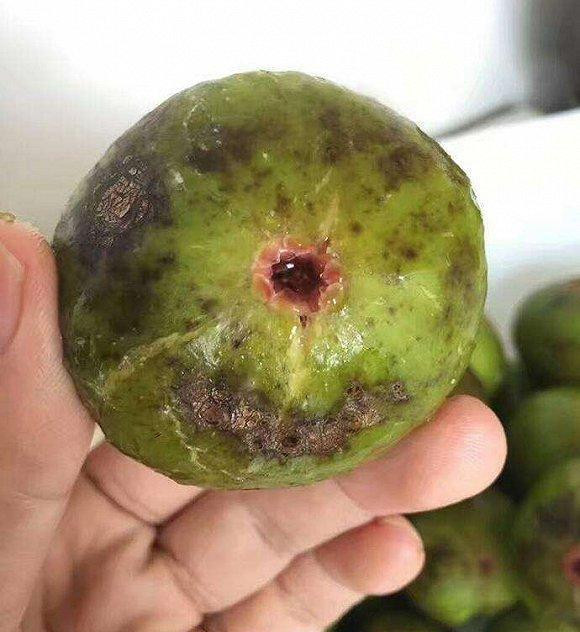 黄绿色,多处爆纹,有的有黑斑,质地非常软