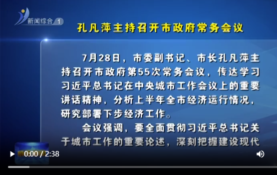 8月14日,市委副书记、市长孔凡萍主持召开市政府第56次常务会议,传达学习习近平总书记近期重要讲话、重要指示精神和中央政治局会议精神,研究我市贯彻落实意见。会议强调,要深入学习贯彻习近平总书记在中央政...