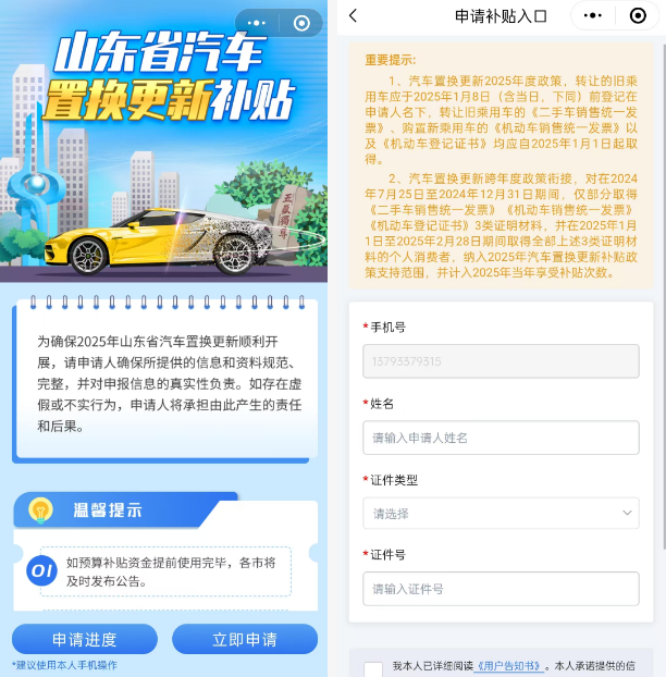 * 申请人相应报废的旧车和所购买的新车应符合2024年报废更新补贴政策要求。