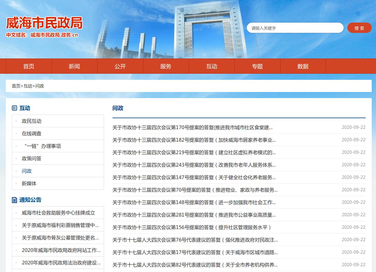 一是主动公开政府信息情况。2020年,通过威海市民政局网站主动公开工作动态、政策文件、政策解读、人事任免等政府信息318余条,通过政务微博发布或转发政务信息1244条,通过威海民政公众号发布或转发政务信息179,向市档案馆移交纸质档案信息2件。承办人大、政协建议12件,办复率100%。其中,办理结果为A类(建议事项已解决或基本解决)的12件,占建议总数的100%,门户网站开设专栏,对人大代表建议和政协提案办理情况进行了公开。