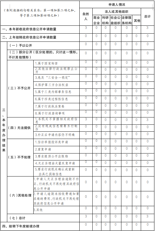 (二)依申请公开方面。畅通受理渠道,规范办理流程,全年收到政府信息公开申请3件,内容涉及外资外贸数据、财政预算执行情况、科技经费投入等方面,均按规定如期答复办结,未发生行政复议和行政诉讼情况。