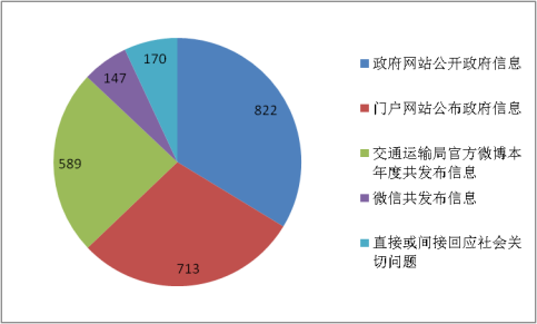 4.政务微博和微信。交通运输局官方微博本年度共发布信息589条,微信共发布信息147条,直接或间接回应社会关切问题170个,微博粉丝人数共计4.8万余人,微信粉丝2400余人。