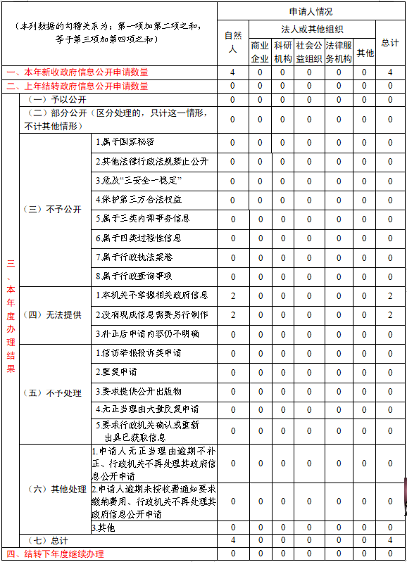 (二)依申请公开方面。完善依申请公开工作各环节程序、标准和责任划分,加强会商协作,依法依规及时准确答复。2024年共收到政府信息公开申请4件,均按时办结。全年未因政府信息公开引发行政复议,行政诉讼案件。