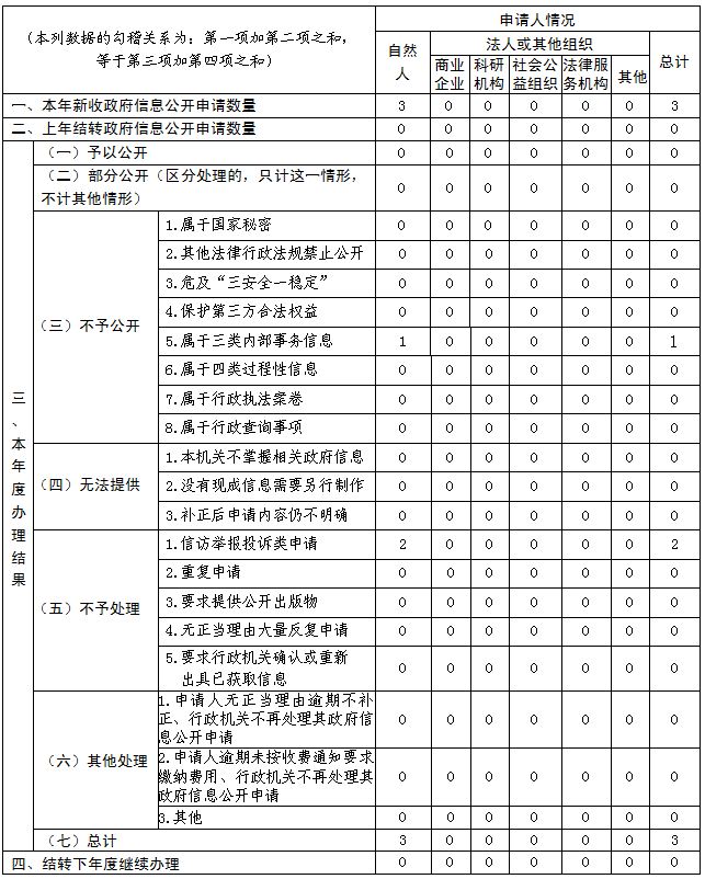 三、收到和处理政府信息公开申请情况