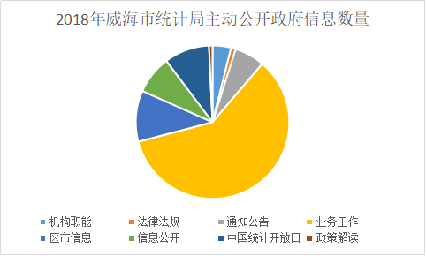 (二)强化自身建设,拓展深化公开内容。结合工作实际,建立健全政府信息公开机制,坚持依法行政,公开透明,规范运作。下发《威海市统计局政务公开工作业务培训计划》(威统办字〔2018〕88号),召开专题会议,对政务公开工作中存在的问题研究部署,开展专题培训,围绕统计工作中“重点、难点、热点、焦点”问题,把群众特别关注的事,把群众反映最强烈、最不满意的事,纳入政务公开范围,加大信息公开力度,不断拓展和深化政务公开的内容。