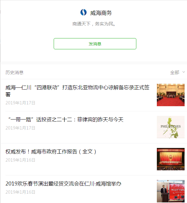 2.政务新媒体公开。充分利用政务微博、微信等新媒体,扩大信息传播,做好政务公开工作。加强政务新媒体管理,健全内容发布审核机制,强化互动和服务功能,确保不同平台和渠道发布的信息准确、一致。全年发布政务微信288期,993条,政务微博836条,树立了威海商务良好形象。