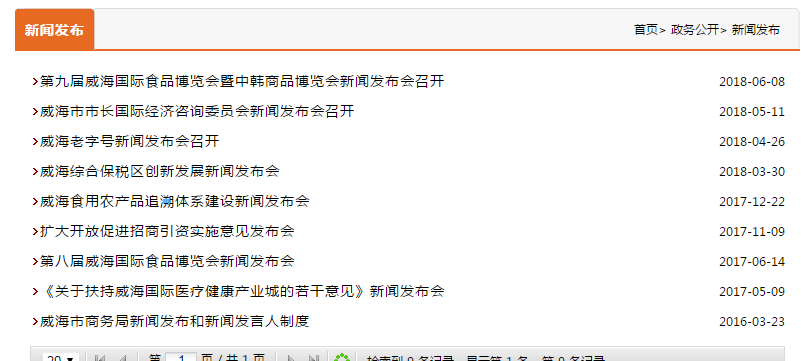 3.新闻发布会。全面贯彻落实《新闻发布和新闻发言人制度》,通过报刊、广播、电视、网站等媒体,客观、准确、及时地发布商务新闻,把握正确舆论导向,保障社会公众的知情权和监督权。2018年共参与新闻发布会4次,分别对威海综合保税区创新发展、威海老字号情况、威海市市长国际经济咨询委员会、第九届威海国际食品博览会暨中韩商品博览会进行介绍。
