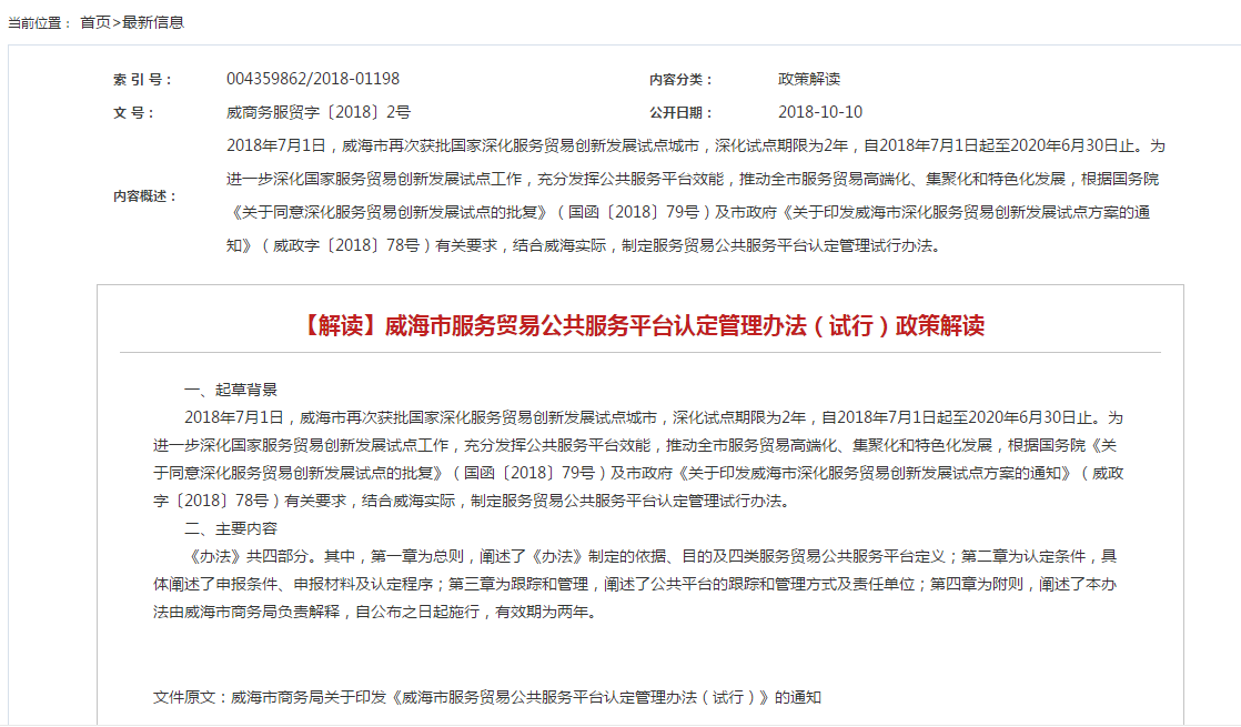 (二)完善制度建设。根据商务工作实际,进一步完善威海市商务局公文类信息公开属性审查制度,明确了公文类信息公开工作应当按照依法、及时、高效的原则,在公文产生的过程中同步确定其公开属性,完善了公文公开属性的具体审查程序,为进一步提高公文类信息公开工作效率,依法做好政府信息公开管理工作提供了制度保证。