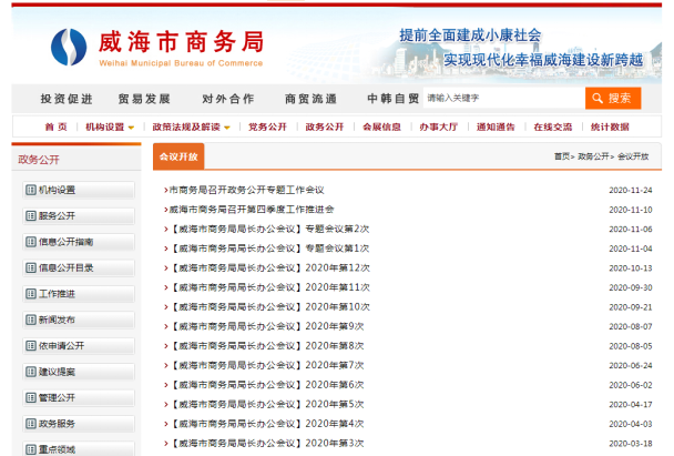 2020年,市商务局认真贯彻落实《条例》和《办法》,结合商务工作实际,坚持“以公开为常态、不公开为例外”,以提升政务公开质量为主线,着力推动行政权力全过程公开、公共服务全流程公开、社会关切全方位回应,持续做好信息发布、解读回应、政民互动、平台建设,持续完善公开制度、创新公开形式、拓展公开内容。通过威海市人民政府网站和威海市商务局门户网站以及新闻媒体、档案馆、政务微博、微信等多种形式,及时、全面、有效地主动公开政府信息,为广大公众提供了更加优质、便捷的信息服务,充分展示商务工作新成效、新亮点、新形象,并全面接受社会监督,不断提升政府信息公开制度和能力建设水平,推动政府信息公开工作取得实效。