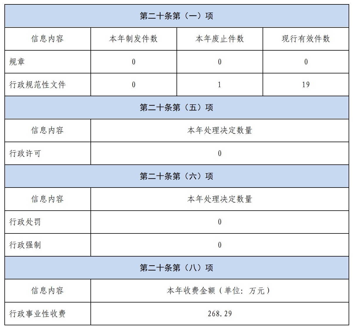 3.政府信息管理方面。修订完善政府信息主动公开目录,实行清单化管理。落实政府信息公开信息发布审查和保密审查制度,严把质量关。落实政府信息全生命周期管理制度,对5个文件开展意见建议调查征集,对4个文件开展专题性政策评价。开展规范性文件集中清理工作,废止规范性文件1件,现行有效规范性文件19件。