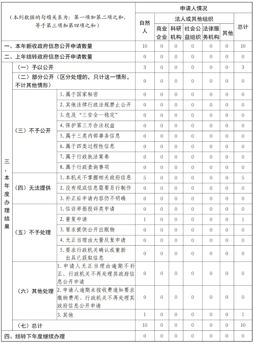 2.依申请公开工作方面。2024年共收到政府信息公开申请数量10件,均通过网络平台形式申请,按时答复、办结率100%。没有发生依申请公开行政复议和行政诉讼案件。依申请公开数量较去年虽有所增加,但排除我局不掌握的申请件,数量与往年基本持平。