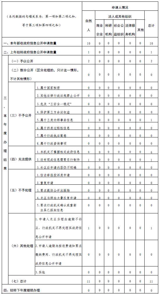 三、收到和处理政府信息公开申请情况
