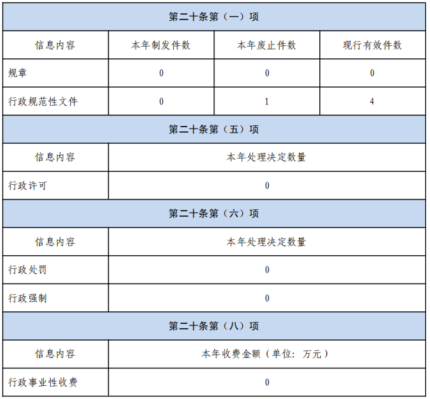 3.政府信息管理情况。一是强化统筹,及时更新完善主动公开基本目录,明确机构职能、法规文件等10类公开事项,并逐个细化明确公开形式、责任科室、公开内容、公开时限,确保政府信息公开及时、准确、规范。二是强化审查,严格落实信息公开发布“三审三校”制度,严格做好保密审查。三是强化管理,坚持发布信息动态管理,定期做好失效、过期信息清理,本年度及时标注失效规范性文件1件,清理过期信息1件。