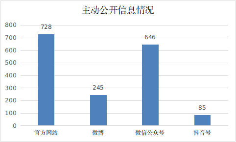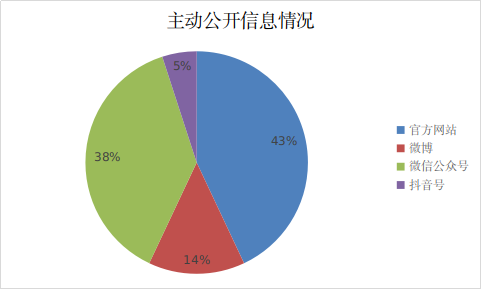 4.政府信息公开平台建设情况。持续维护好官方微博、微信、抖音、局官方网站“三微一网”媒体矩阵。规范设置“政府信息公开栏目”,下设政府信息公开指南、政府信息公开制度、法定主动公开内容、政府信息公开年报4大栏目。并根据职能职责,在法定主动公开内容子栏目中,覆盖了食品药品监管、知识产权监管、产品质量监管、人大建议政协提案等方面的具体内容,开设了“双随机、一公开”专题专栏。开设“部门信箱”等互动交流平台,网民可通过统一的互动交流平台提交信息问题。